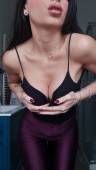 Mi masturbo la figa con il mio dildo nero con le tette di fuori