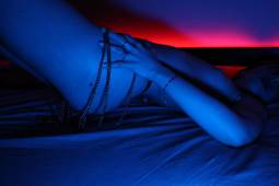 Sul letto, in intimo sexy, collant e tacchi...ho tanta voglia di essere fottuta e di godere! Mi scopo forte con il mio dildo fino a esplodere e ti incito a riempirmi di sborra la fighetta tutta aperta!